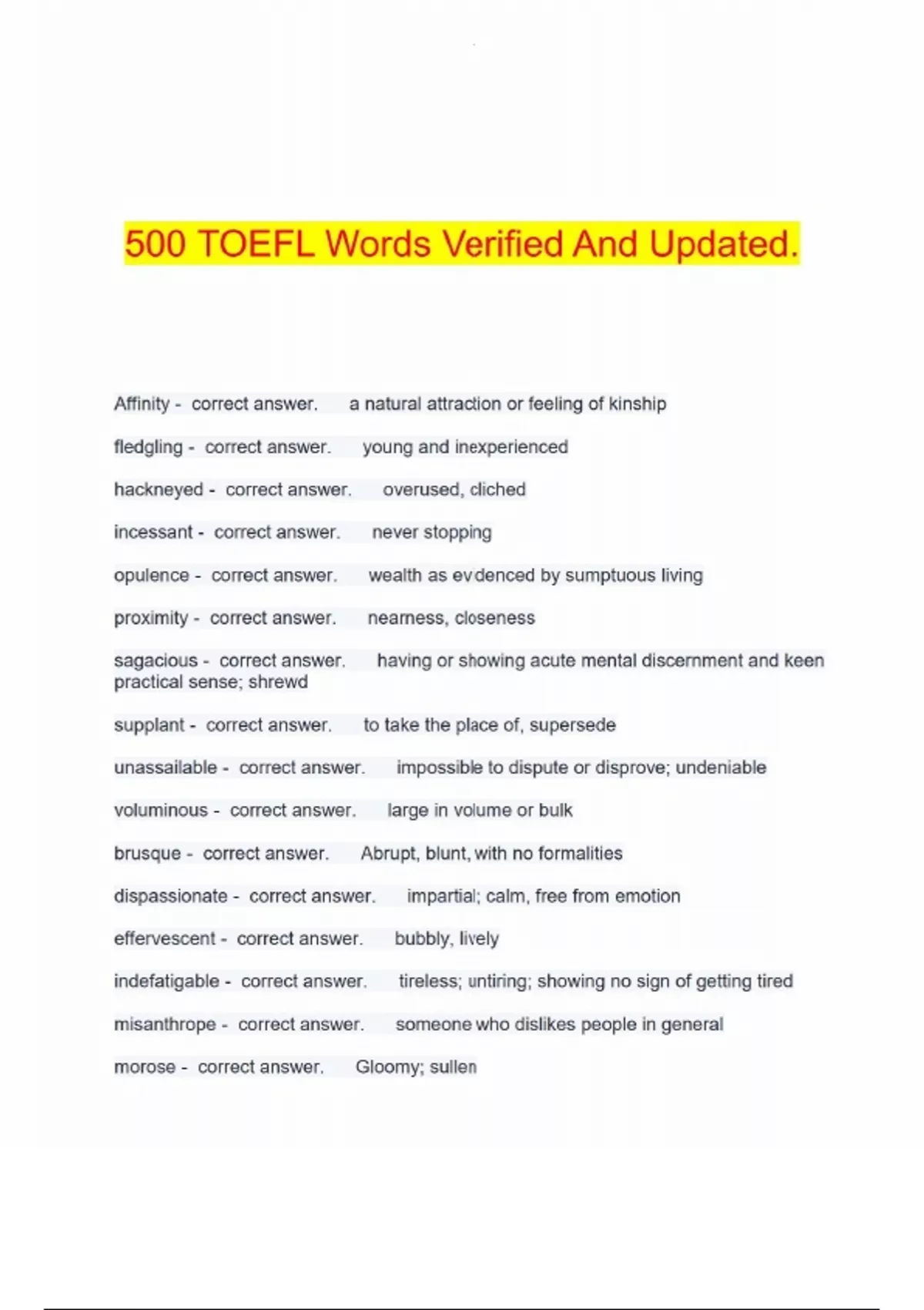 500 toefl words verified and updated