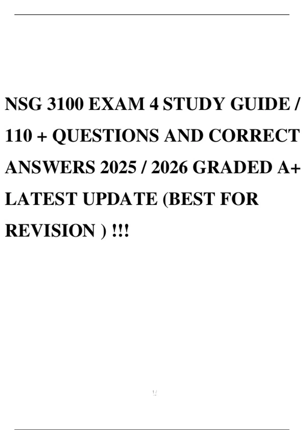 NSG 3100 EXAM 4 STUDY GUIDE / 110 + QUESTIONS AND CORRECT ANSWERS 2025 / 2026 GRADED A+ LATEST UPDATE (BEST FOR REVISION ) !!!