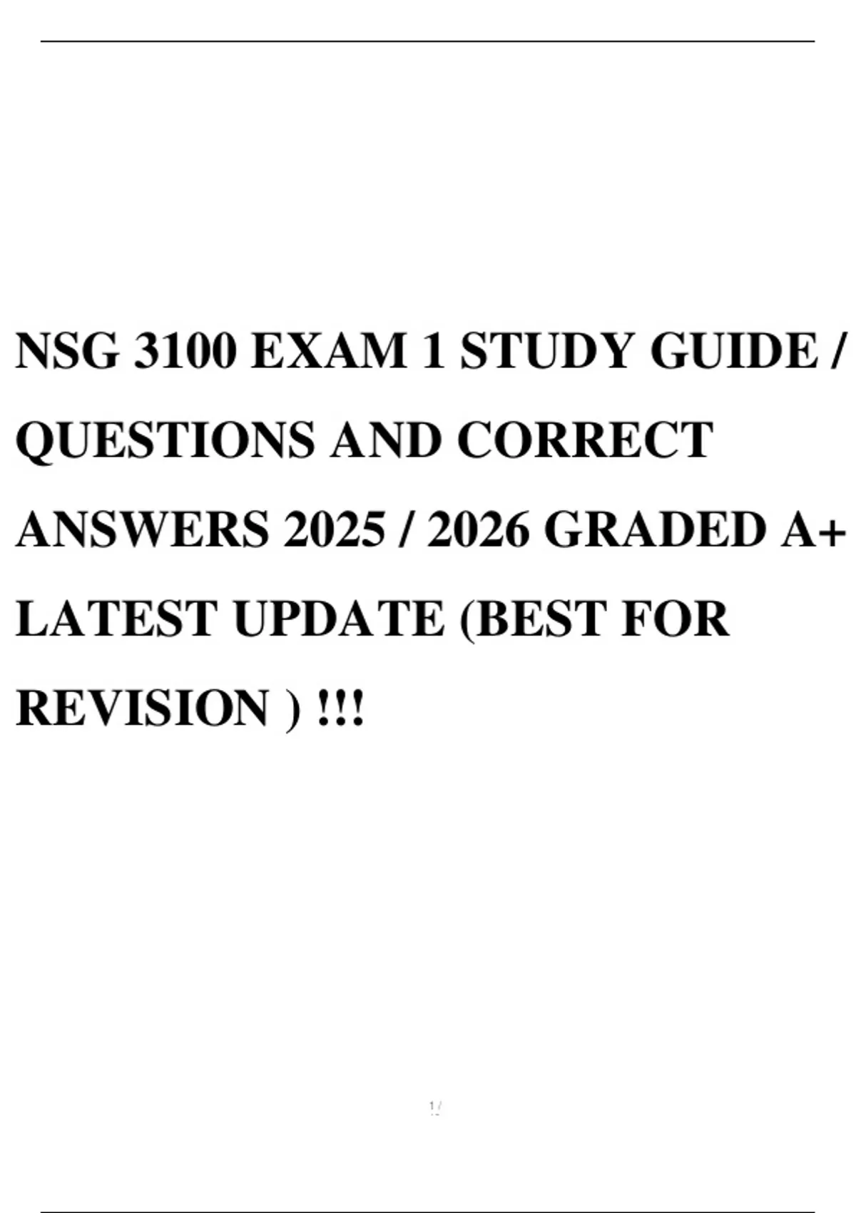 NSG 3100 EXAM 1 STUDY GUIDE / QUESTIONS AND CORRECT ANSWERS 2025 / 2026 GRADED A+ LATEST UPDATE (BEST FOR REVISION ) !!!