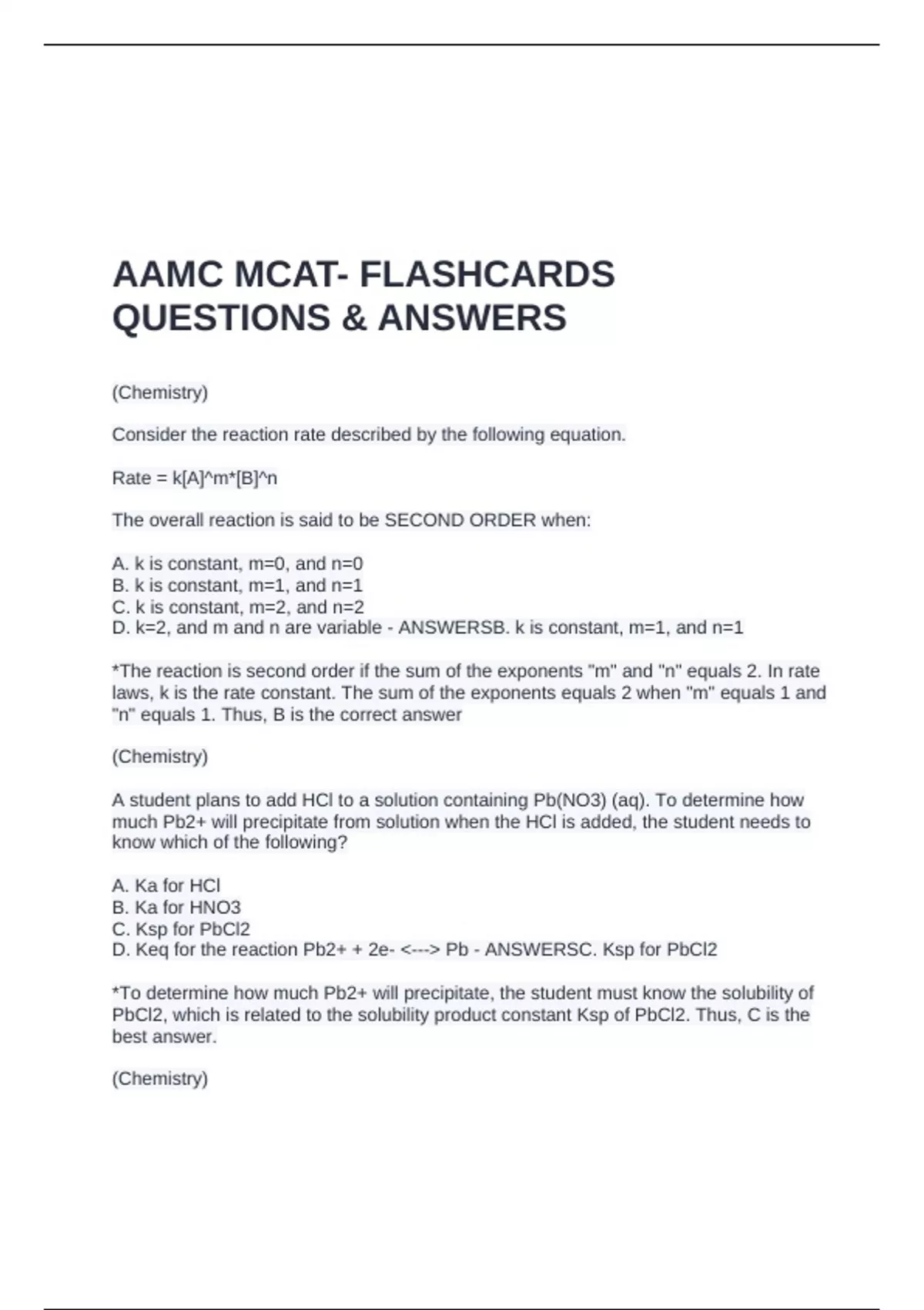 D. Keq for the reaction Pb2+ + 2e- <---> Pb - ANSWERSC. Ksp for PbCl2