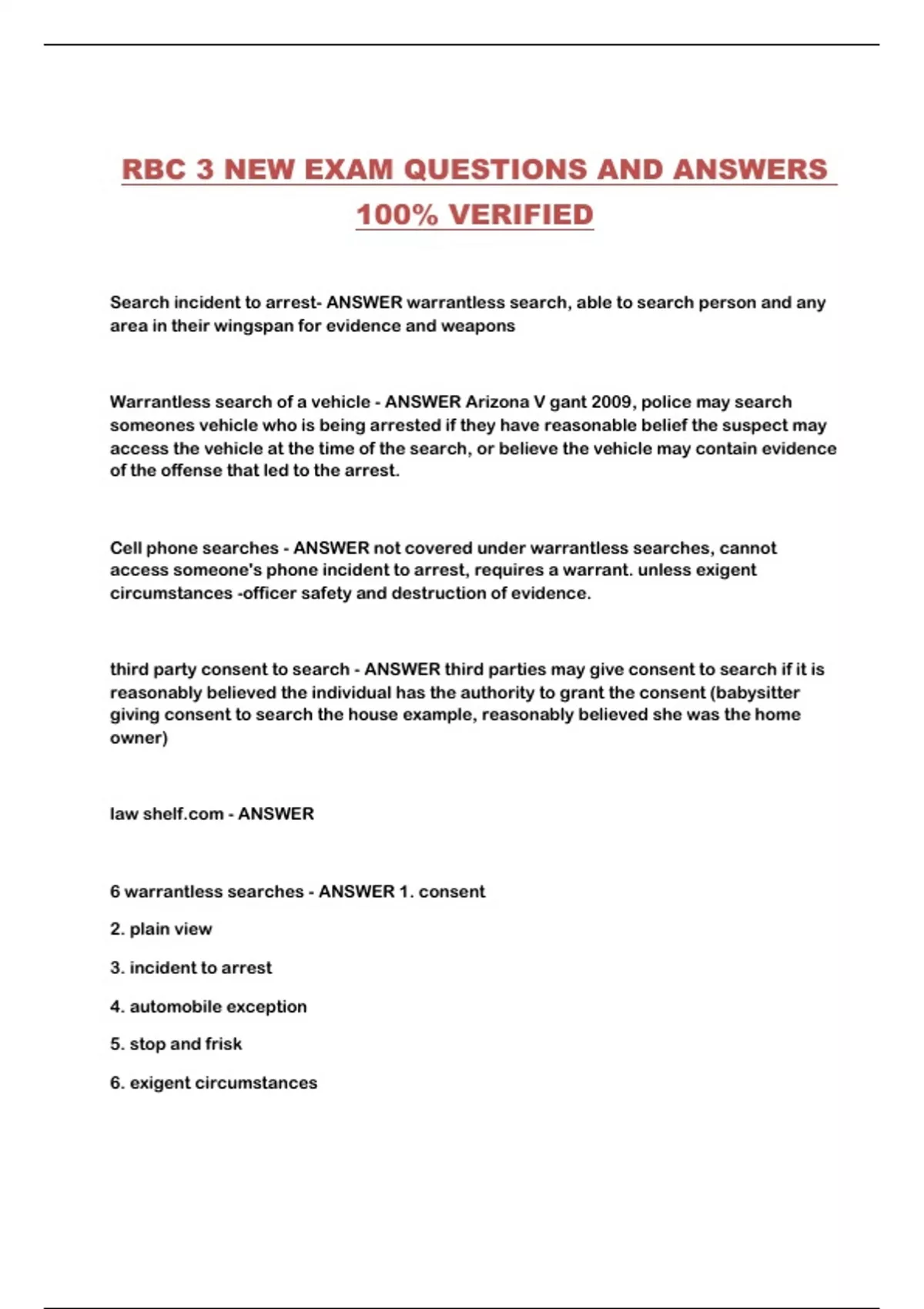 RBC 3 NEW EXAM QUESTIONS AND ANSWERS