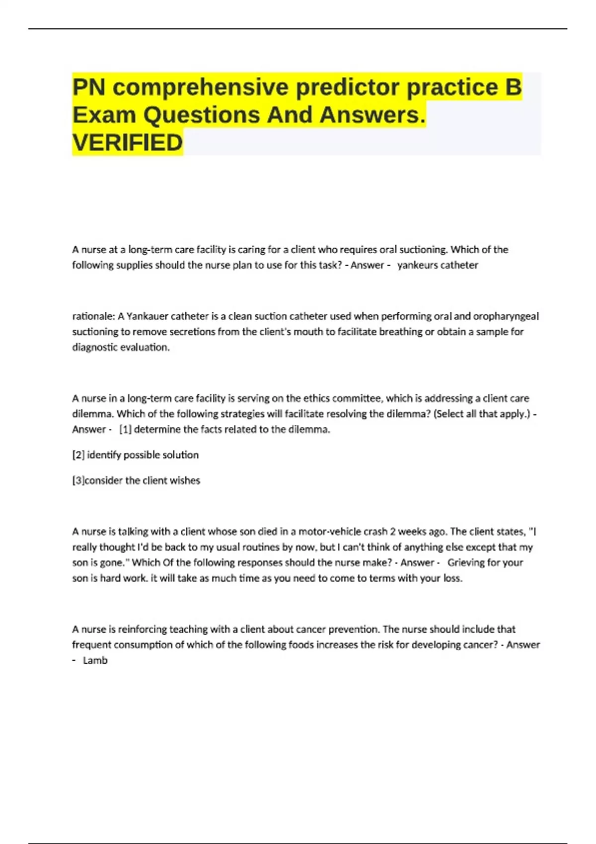 PN comprehensive predictor practice B Exam Questions and Correct Answers (100% COMPLETE ANSWERS) ALREADY GRADED A+ | 100% satisfaction guarantee with complete solutions, (Latest update)