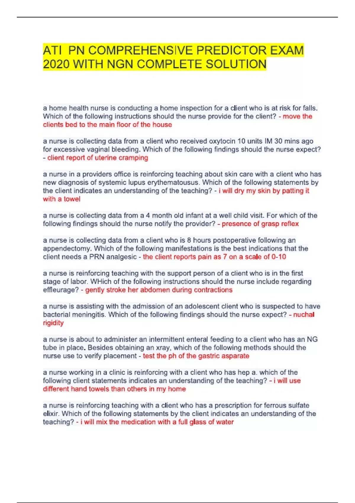 ATI PN COMPREHENSIVE PREDICTOR EXAM Questions and Correct Answers (100% COMPLETE ANSWERS) ALREADY GRADED A+ | 100% satisfaction guarantee with complete solutions, (Latest update)