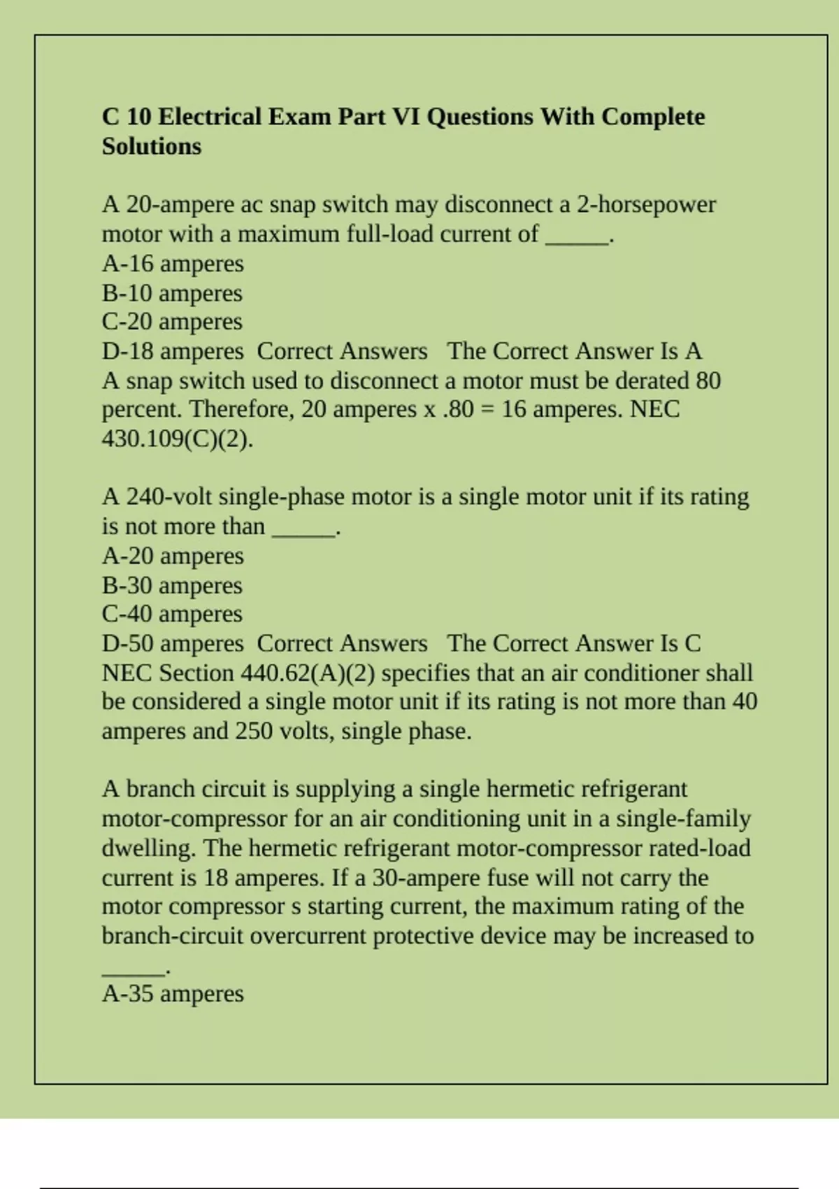 D-50 amperes Correct Answers The Correct Answer Is C