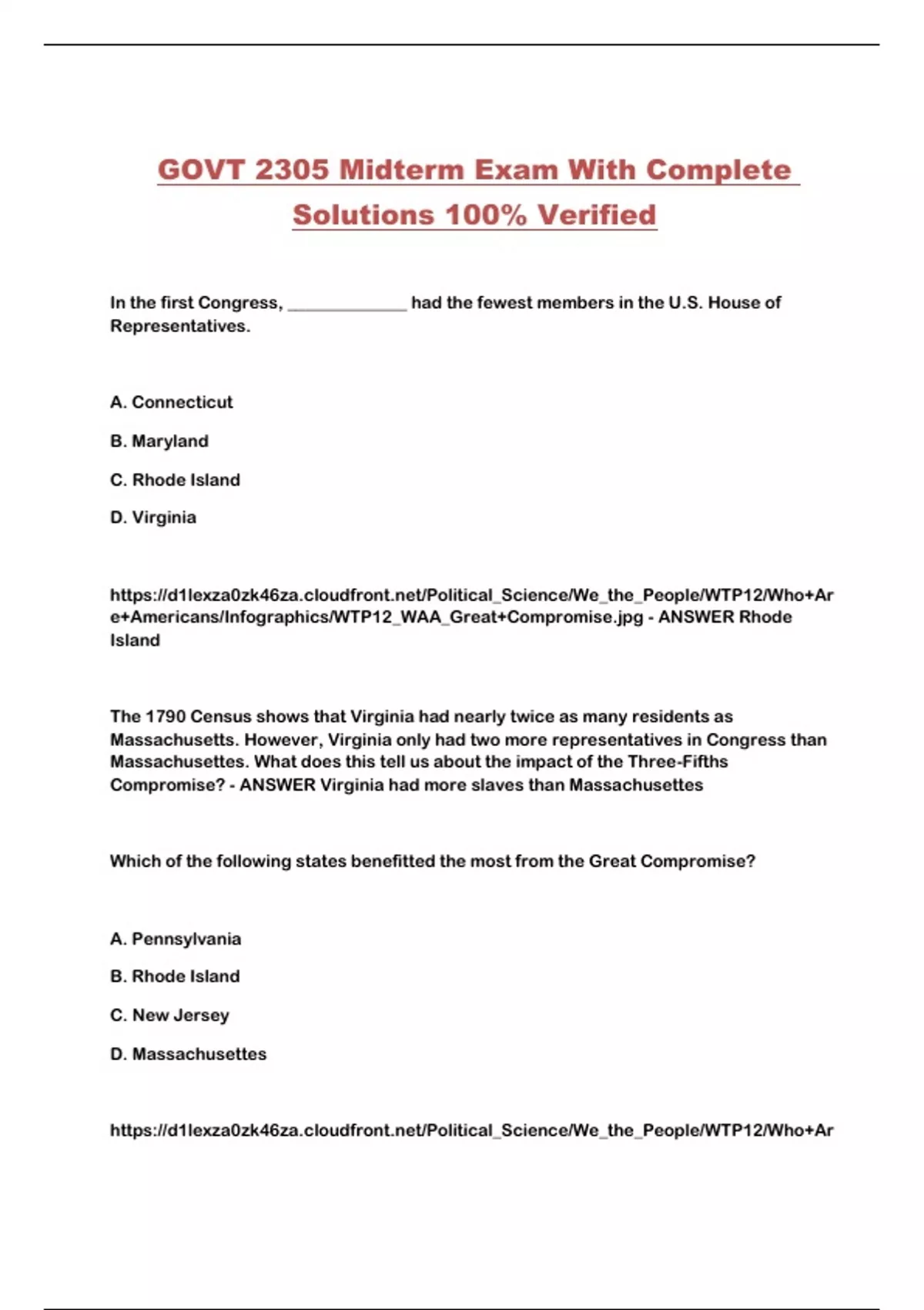 GOVT 2305 Midterm Exam With Complete