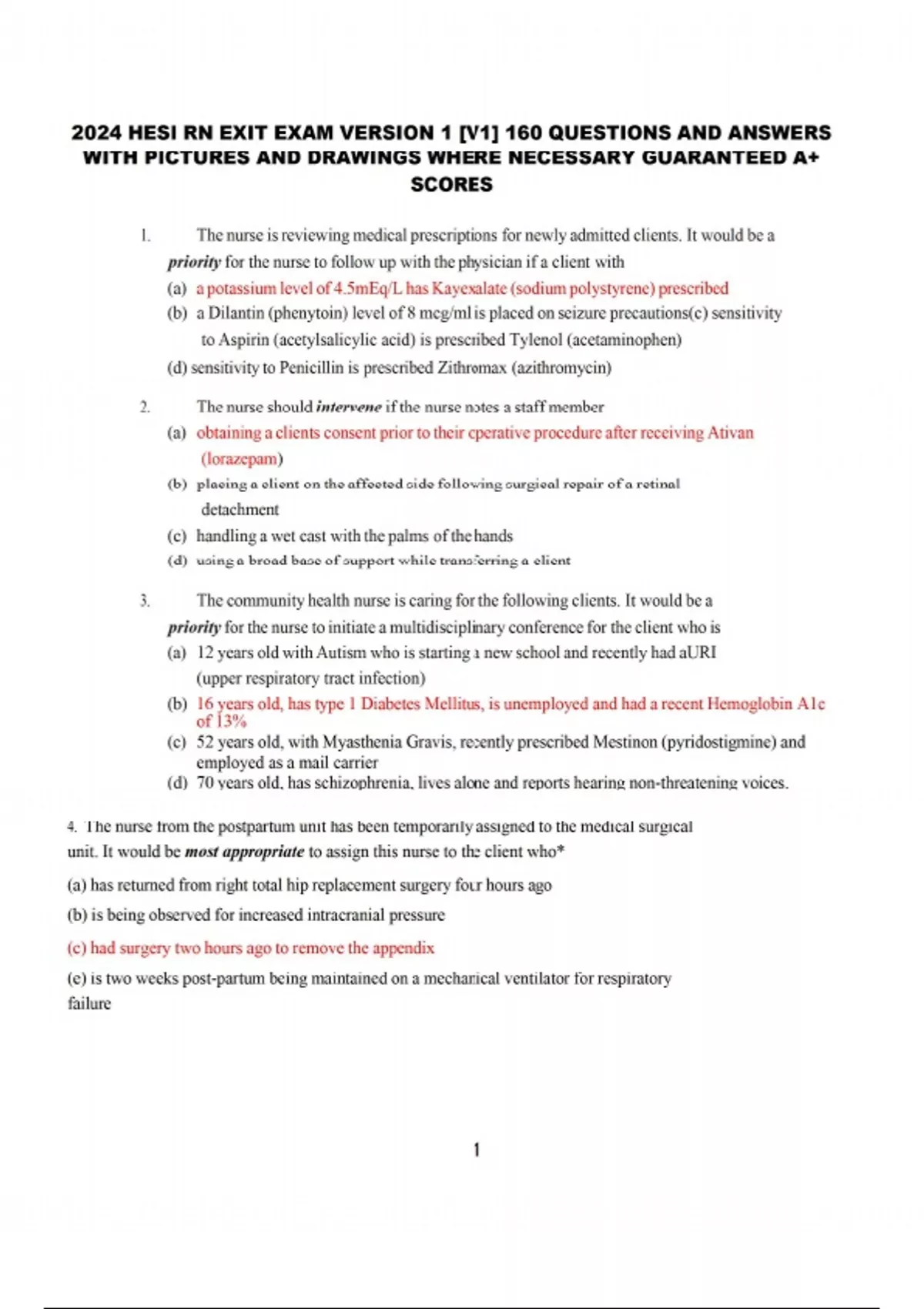 2024 HESI RN EXIT EXAM VERSION 1 [V1] 160 QUESTIONS AND ANSWERS WITH PICTURES AND DRAWINGS WHERE NECESSARY GUARANTEED A+ SCORES