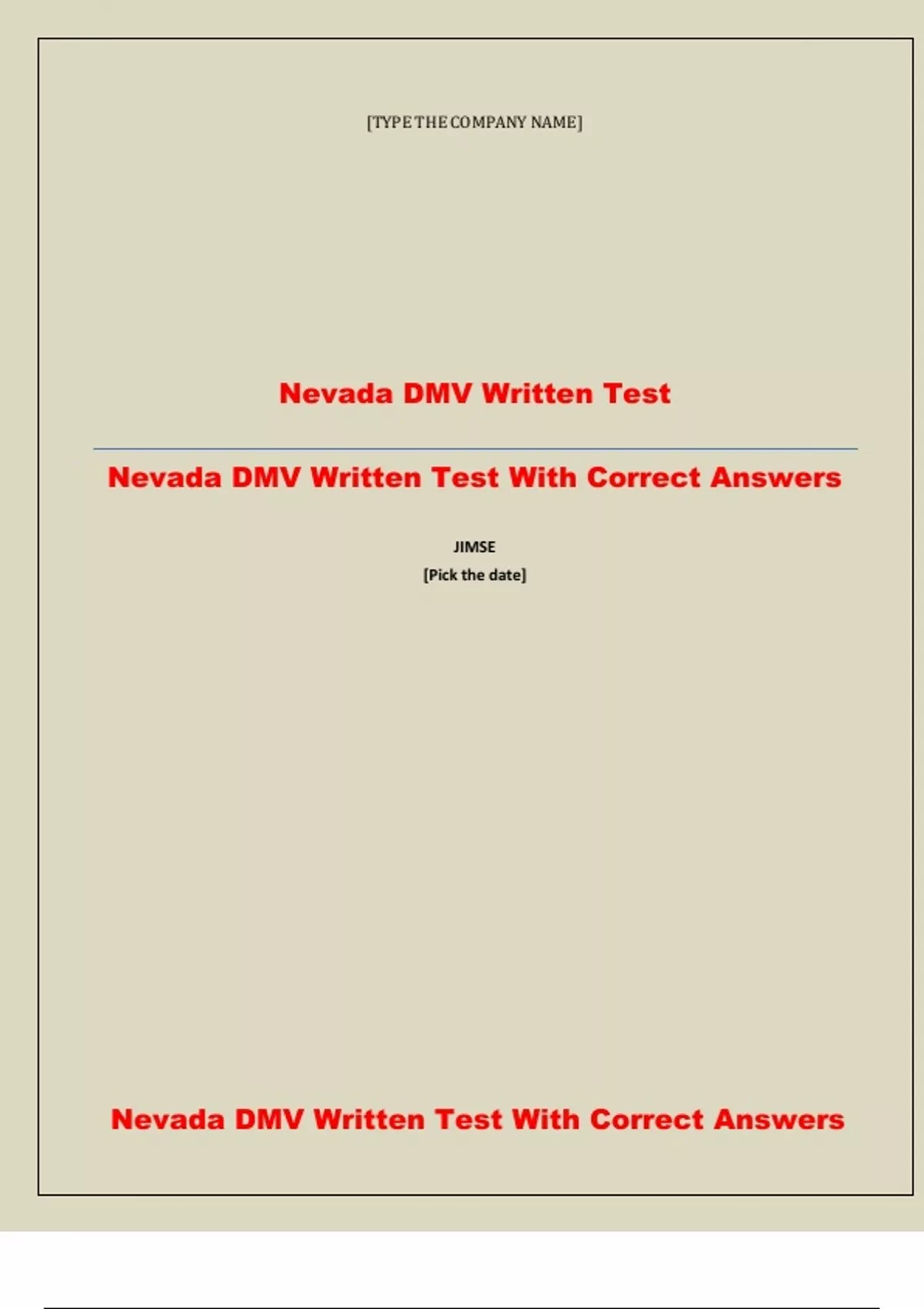 , Nevada DMV Written Test With Correct Answers