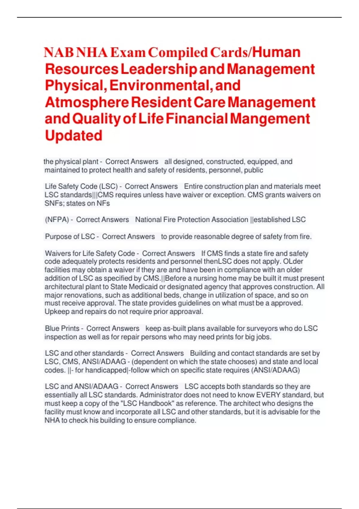 , LSC, ANSI/ADAAG, and CMS - Correct Answers **- building materials - fire-rate
