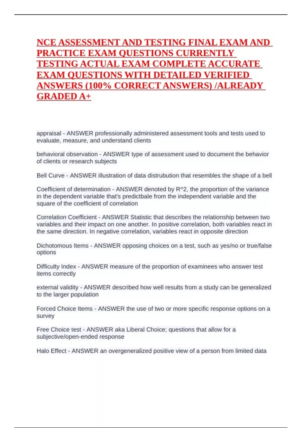 ANSWERS (100% CORRECT ANSWERS) /ALREADY