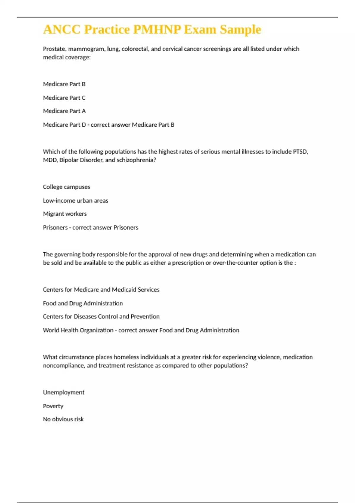Prostate, mammogram, lung, colorectal, and cervical cancer screenings are all listed under which