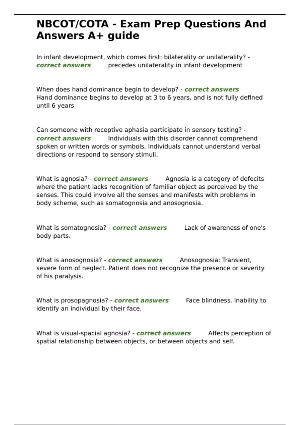 , NBCOT/COTA - Exam Prep Questions And