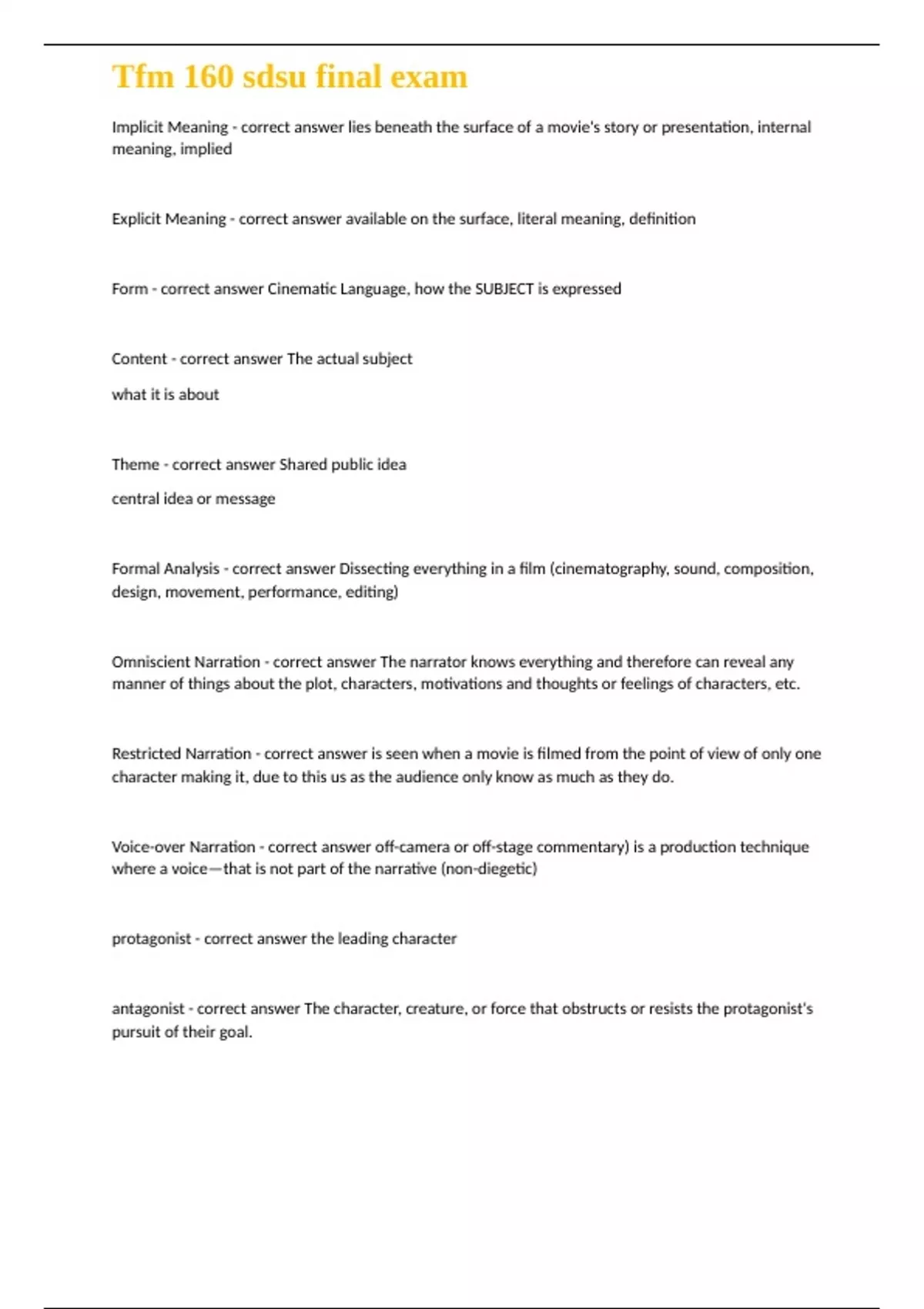 diegetic element - correct answer An element—event, character, object, setting, sound—that helps form