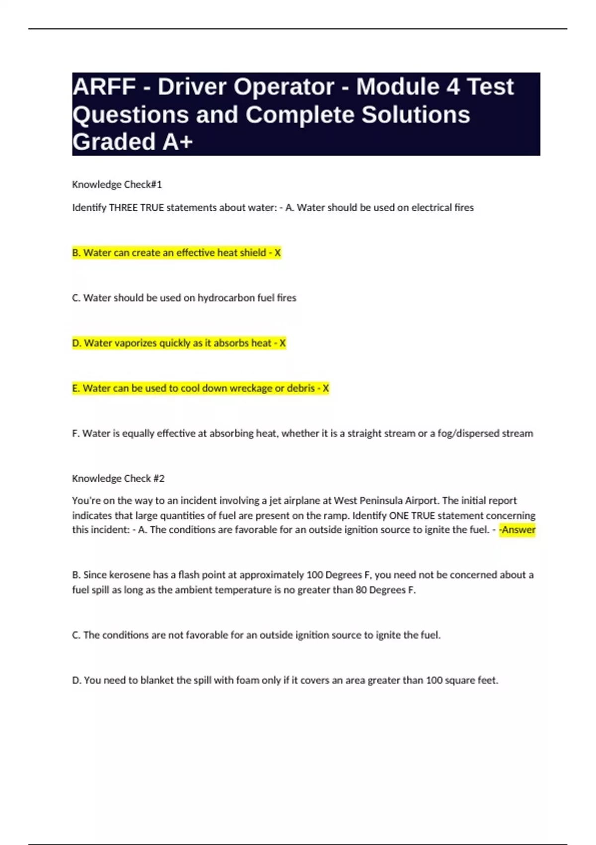 ARFF - Driver Operator - Module 4 Test Questions and Complete Solutions Graded A+