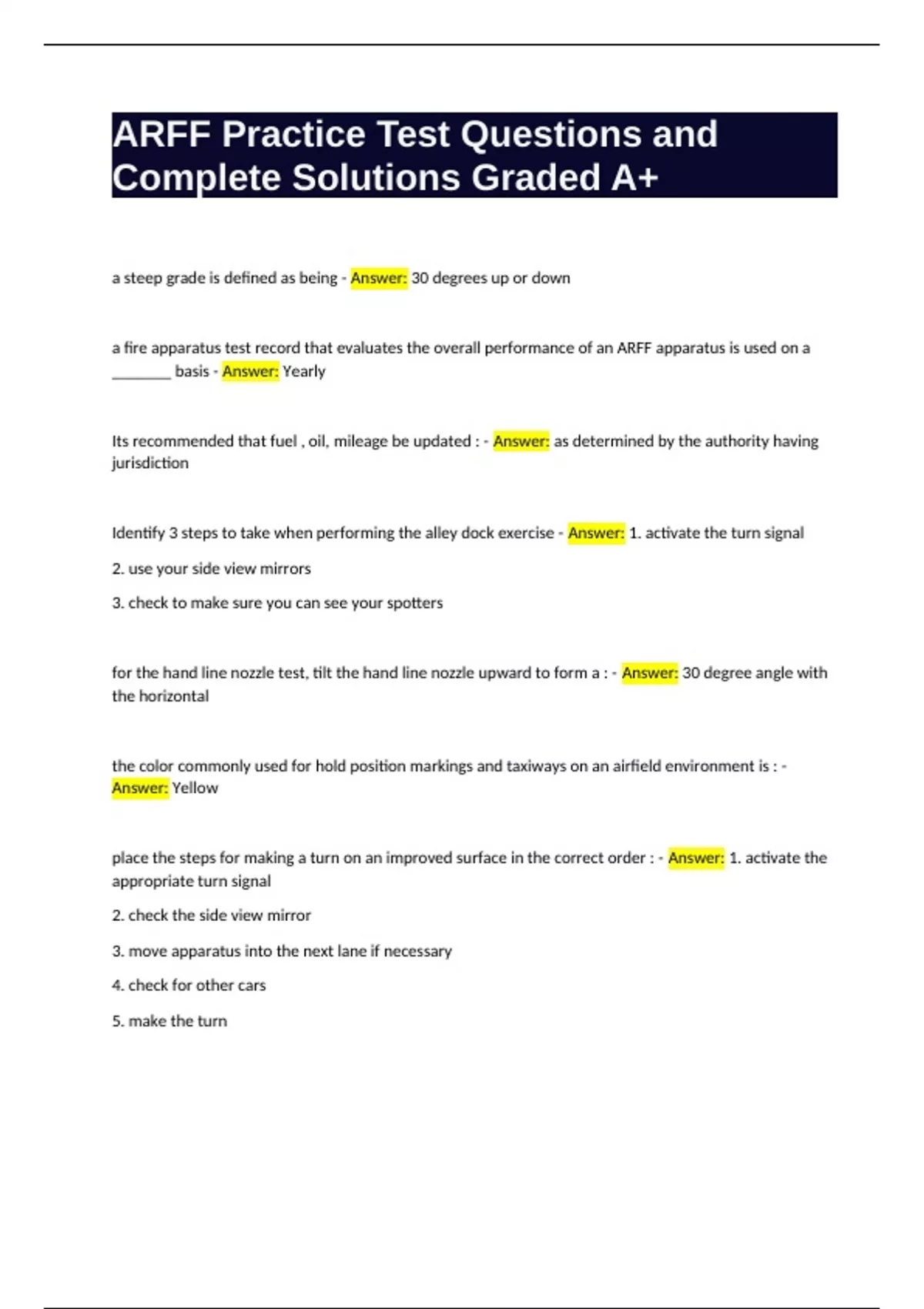 Arff Driver_operator Exam Questions and Complete Solutions Graded A Bundle Compilation