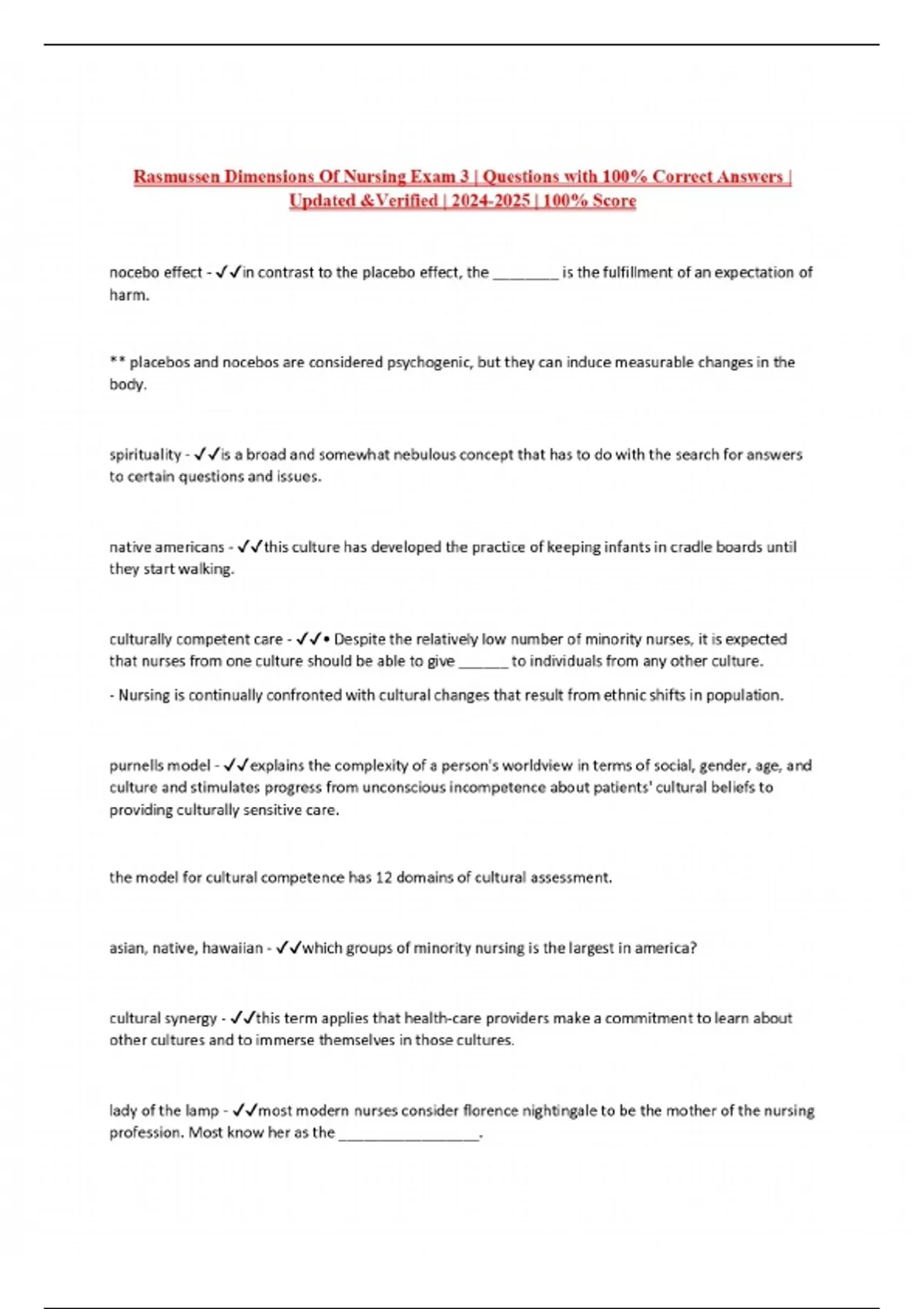Rasmussen Dimensions Of Nursing Exam 3 | Questions with 100% Correct Answers | Updated &Verified | | 100% Score
