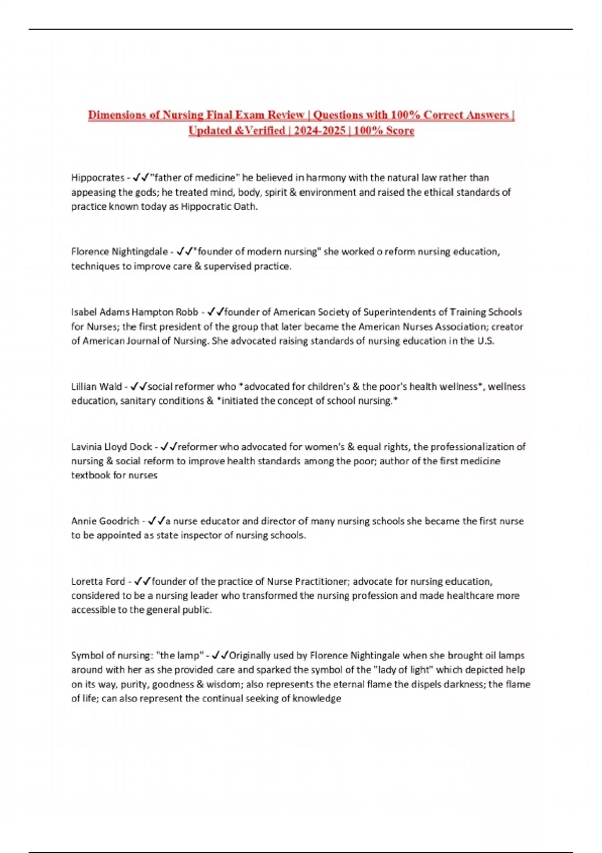 Dimensions of Nursing Final Exam Review | Questions with 100% Correct Answers | Updated &Verified | | 100% Score