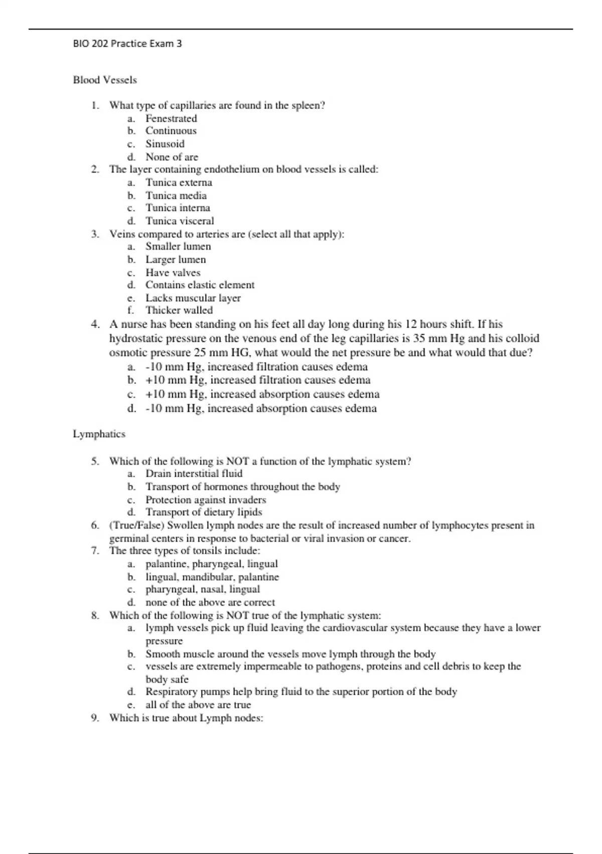 BIO 202 Practice Exam 3