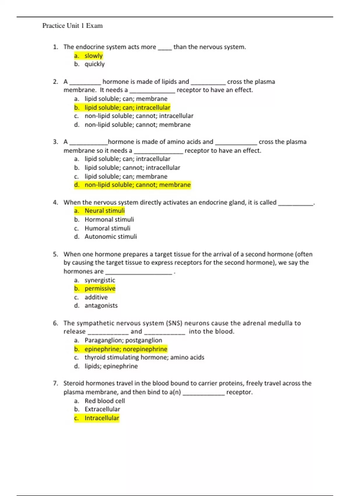 7. Steroid hormones travel in the blood bound to carrier proteins, freely travel across the