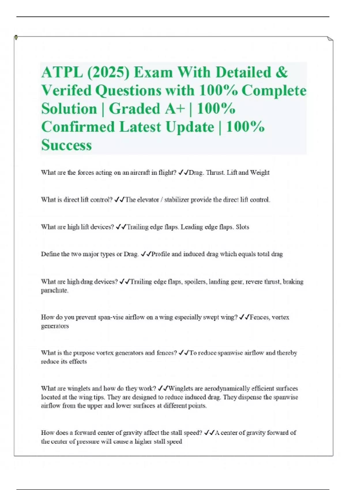 ATPL (2025) Exam With Detailed & Verifed Questions with 100% Complete Solution | Graded A+ | 100% Confirmed Latest Update | 100% Success