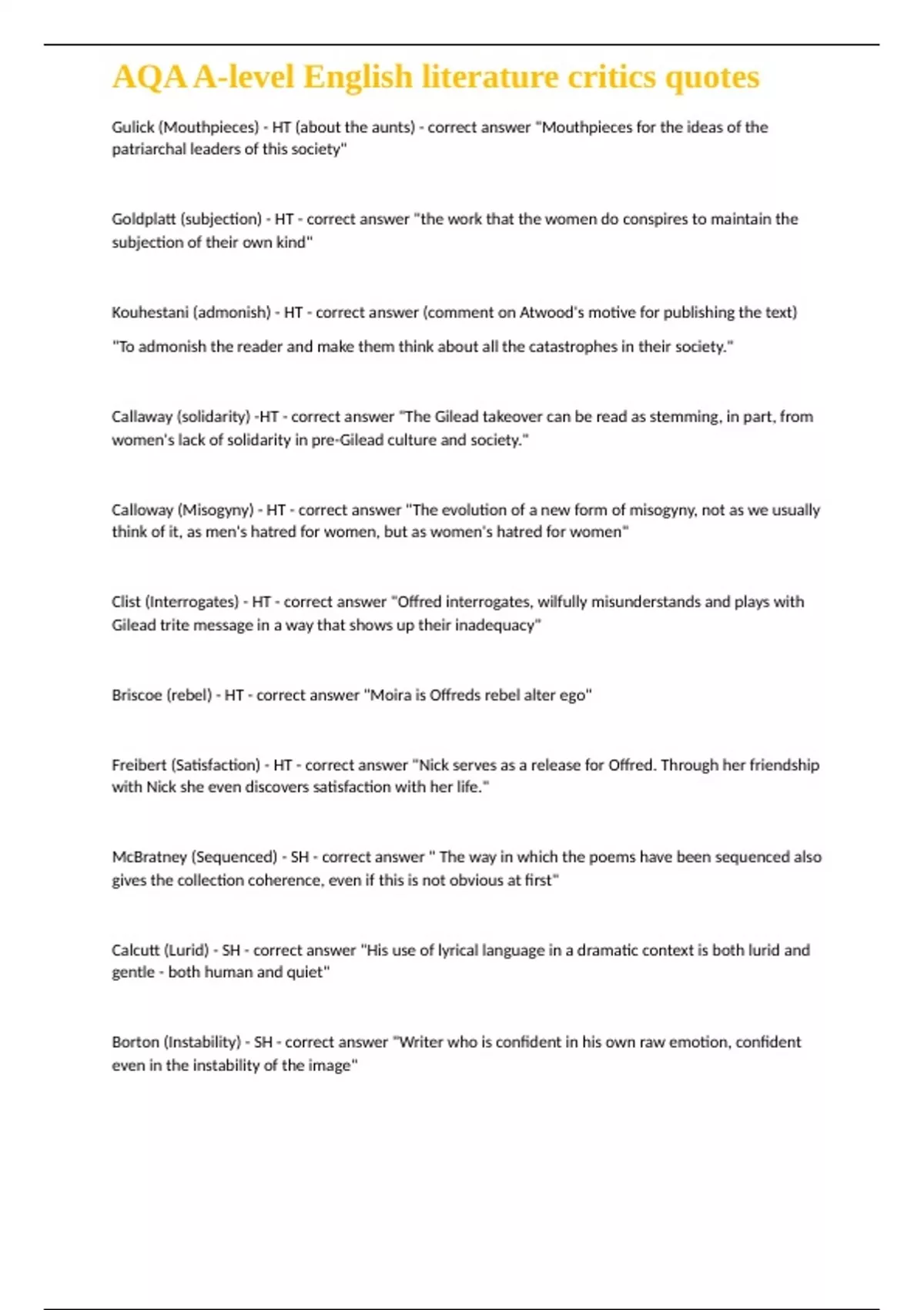 Calcutt (Lurid) - SH - correct answer "His use of lyrical language in a dramatic context is both lurid and