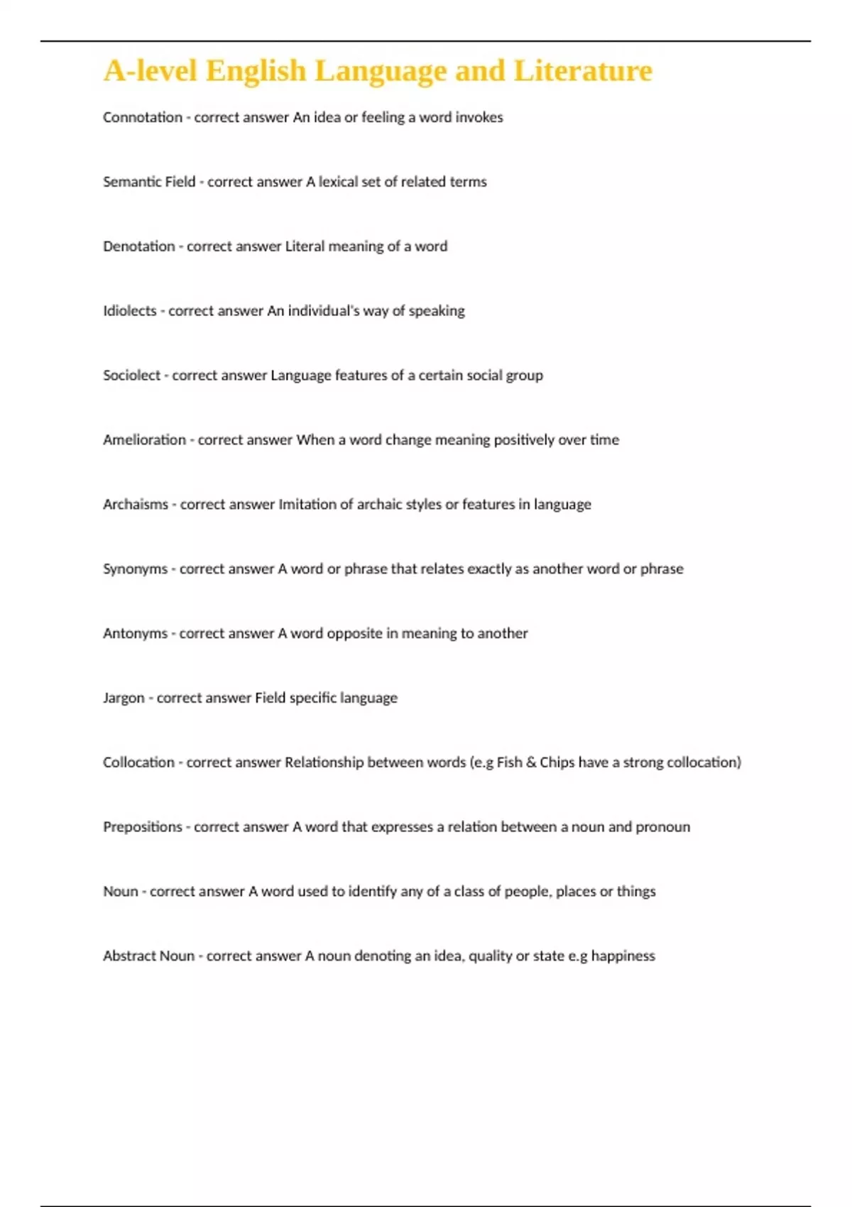 Amelioration - correct answer When a word change meaning positively over time