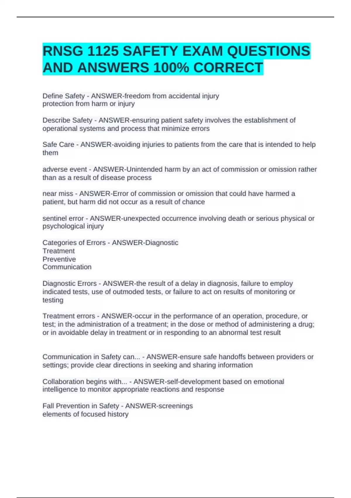Safe Care - ANSWER-avoiding injuries to patients from the care that is intended to help
