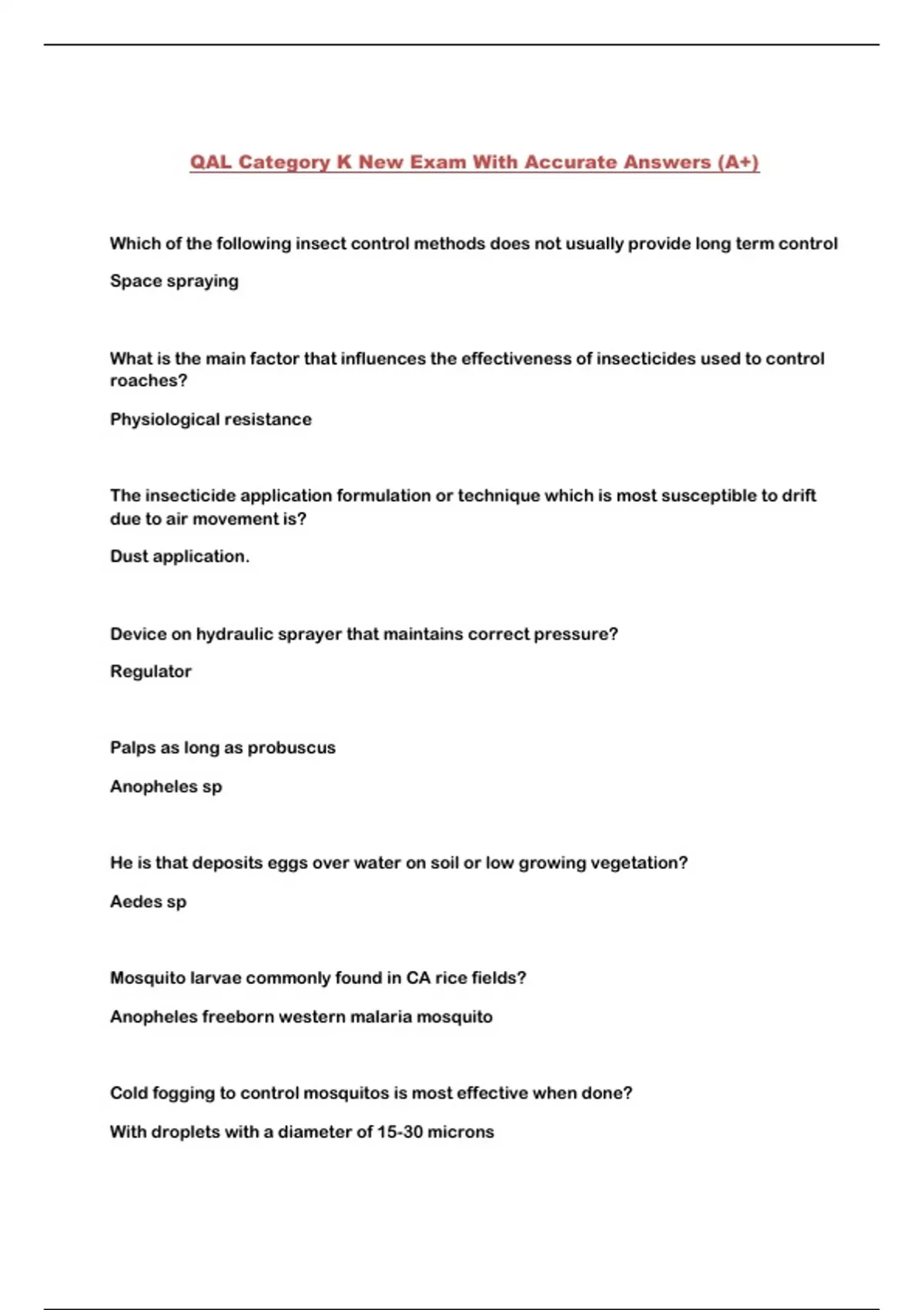 QAL Category K New Exam With Accurate Answers (A+)...