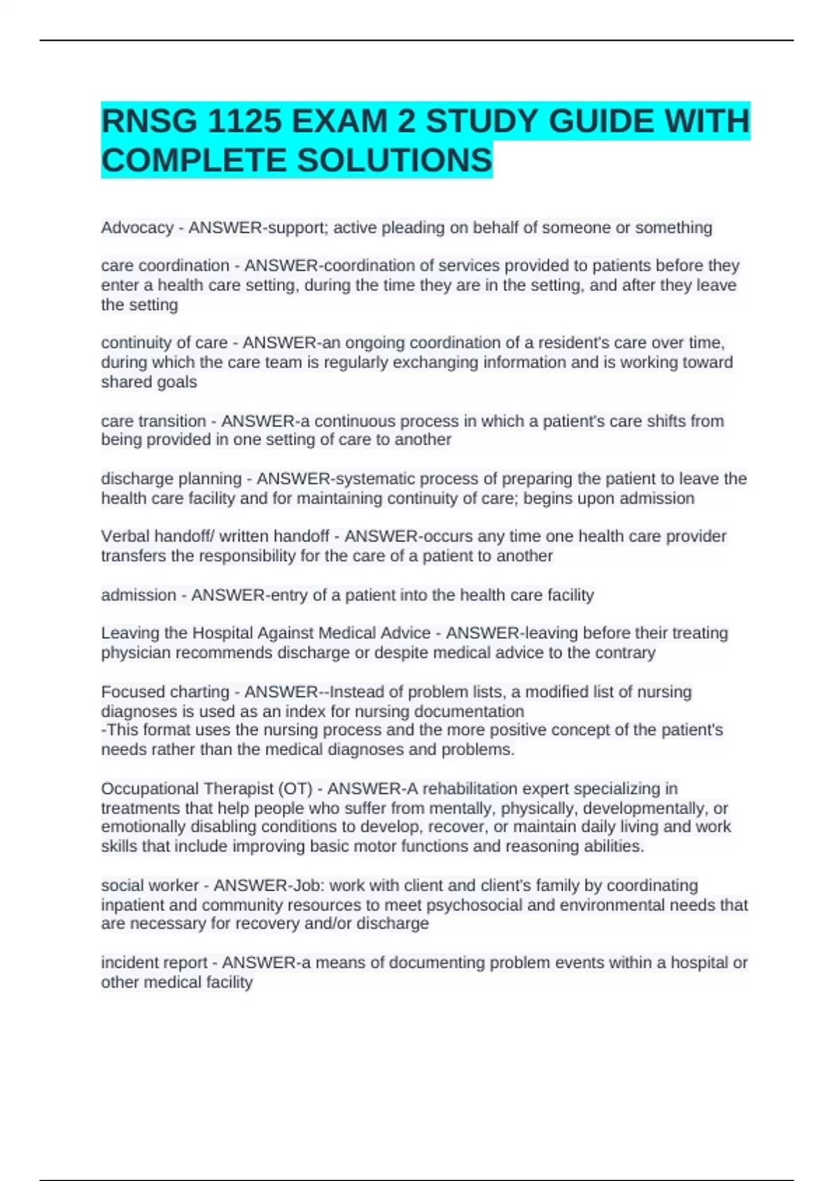discharge planning - ANSWER-systematic process of preparing the patient to leave the
