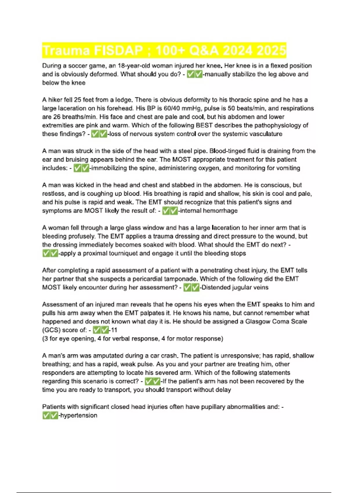 Trauma FISDAP Questions and Correct Answers (100% COMPLETE ANSWERS) ALREADY GRADED A+ | 100% satisfaction guarantee with complete solutions, (Latest update) 2025/2026