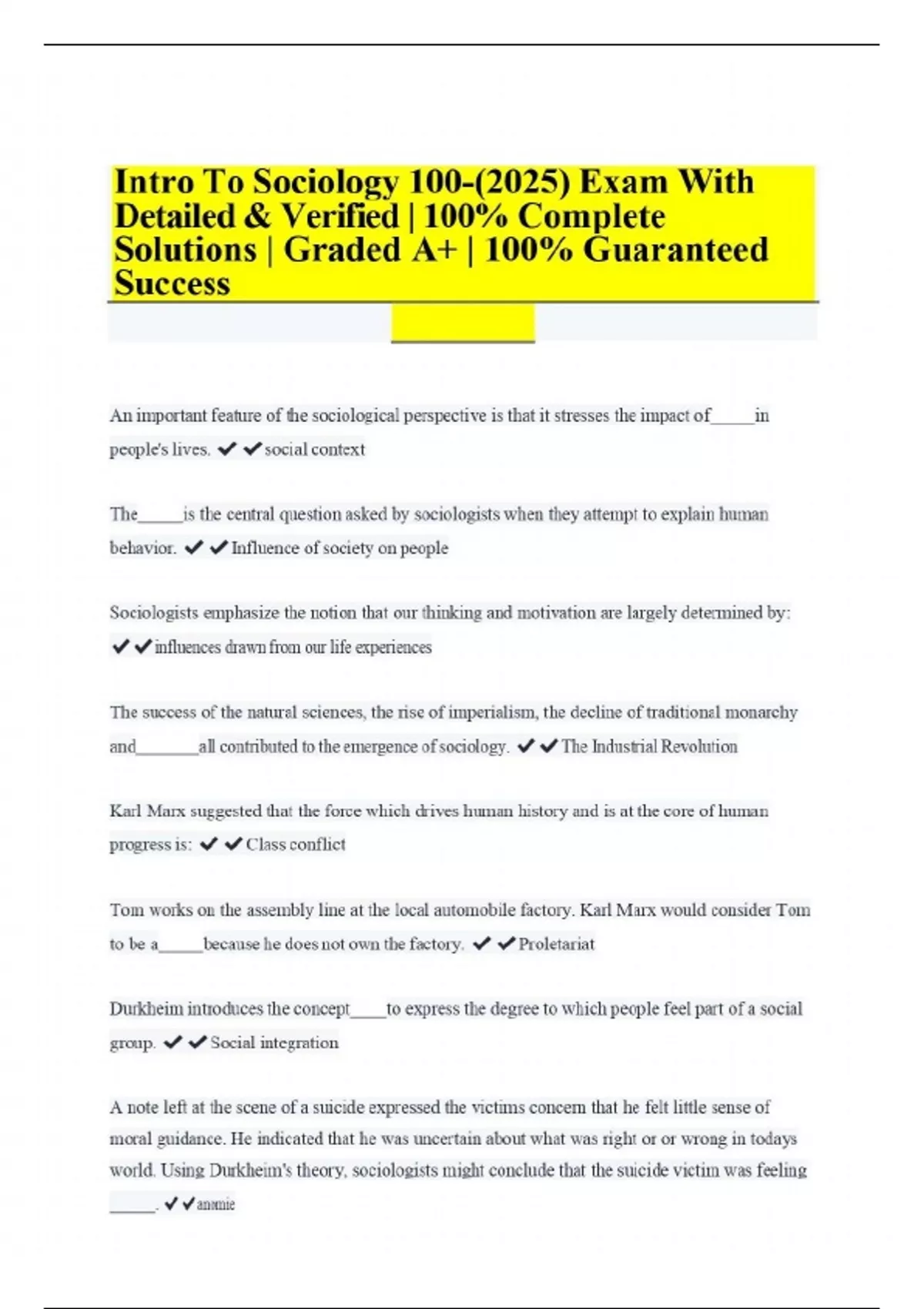 Intro To Sociology 100-(2025) Exam With Detailed & Verified | 100% Complete Solutions | Graded A+ | 100% Guaranteed Success