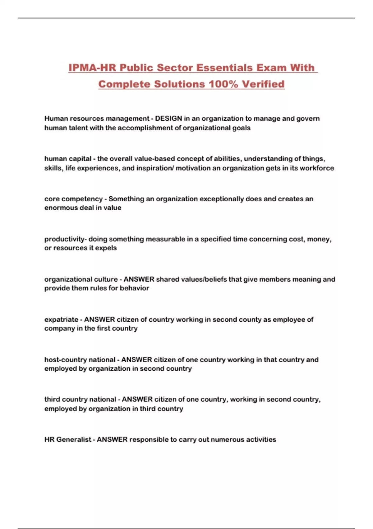 IPMA-HR Public Sector Essentials Exam With Complete Solutions 100% Verified...