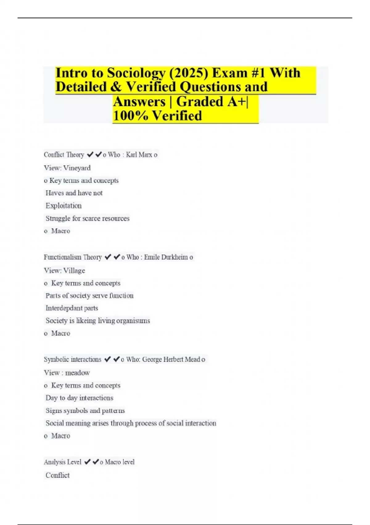 Intro to Sociology (2025) Exam #1 With Detailed & Verified Questions and Answers | Graded A+| 100% Verified