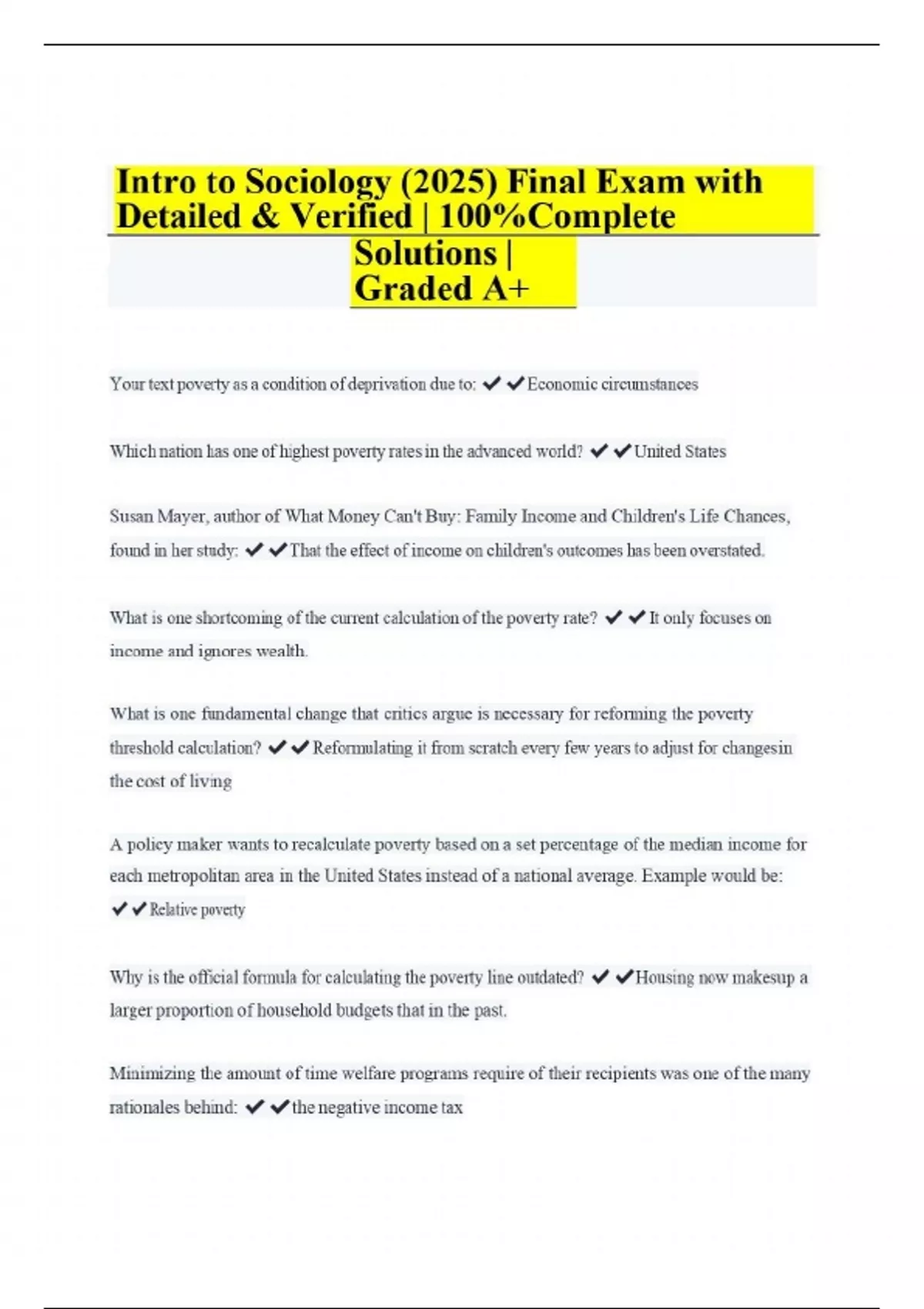 Intro to Sociology (2025) Final Exam with Detailed & Verified | 100%Complete Solutions | Graded A+