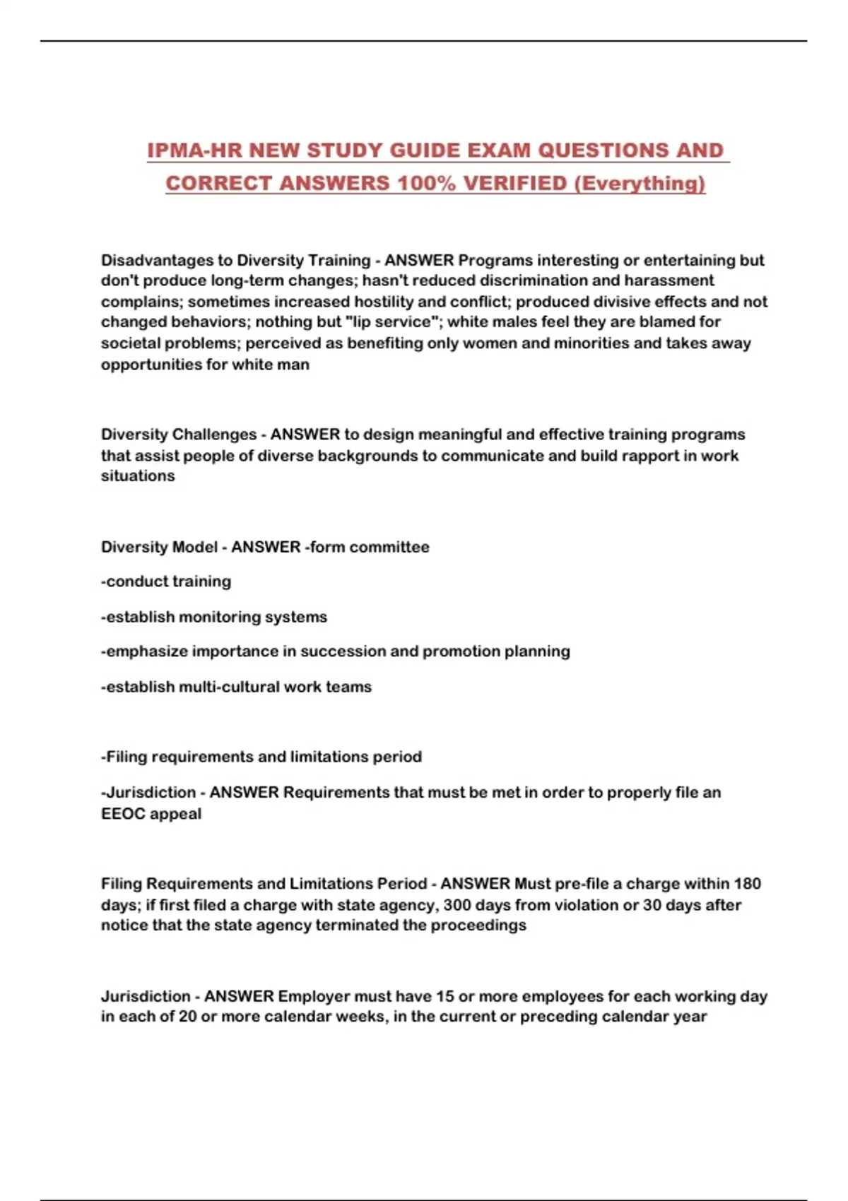 IPMA-HR NEW STUDY GUIDE EXAM QUESTIONS AND CORRECT ANSWERS 100% VERIFIED (Everything)...