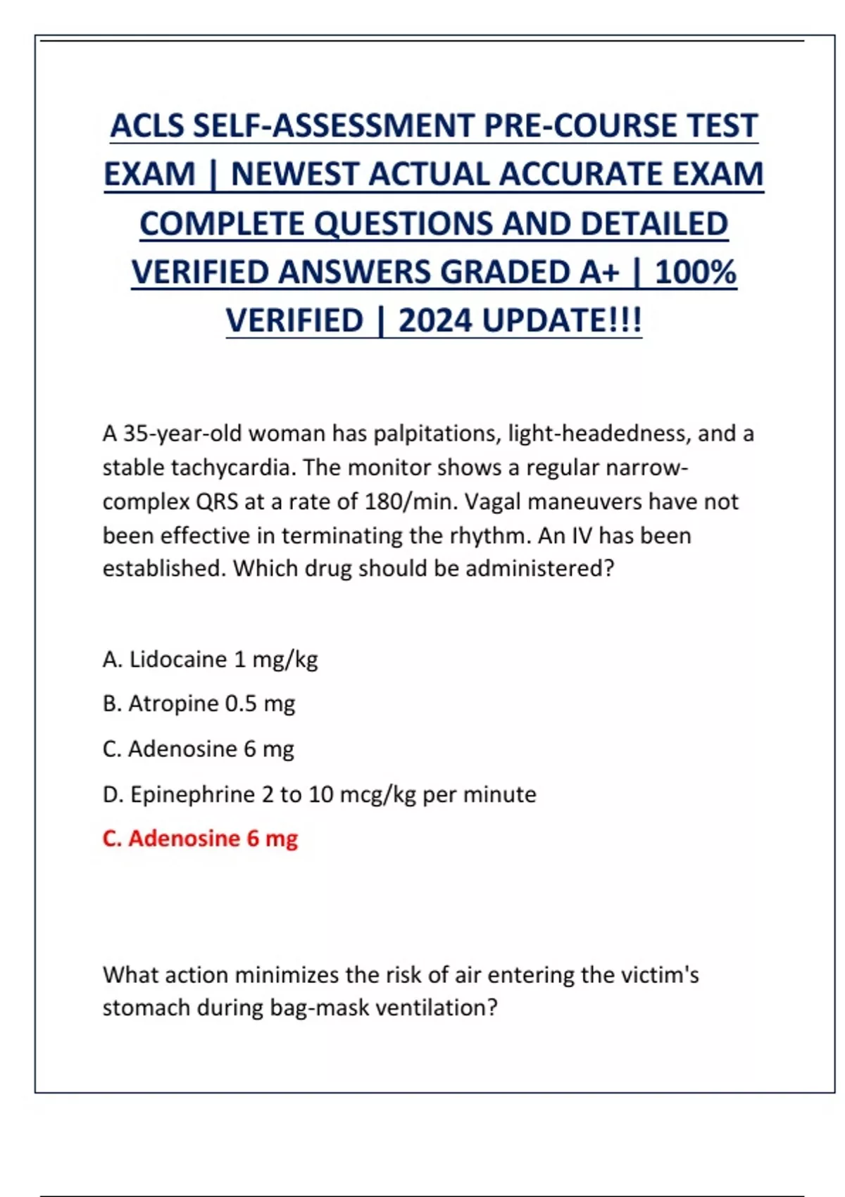 ACLS SELF-ASSESSMENT PRE-COURSE TEST EXAM | NEWEST ACTUAL ACCURATE EXAM COMPLETE QUESTIONS AND DETAILED VERIFIED ANSWERS GRADED A+ | 100% VERIFIED | 2024 UPDATE!!!