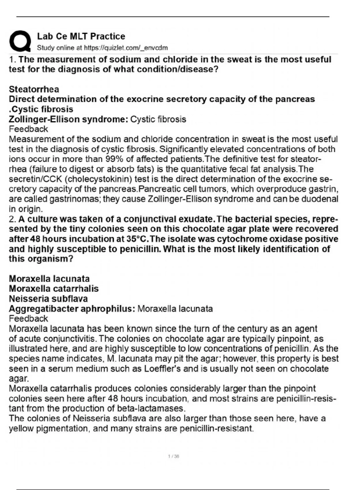 1. The measurement of sodium and chloride in the sweat is the most useful test for the diagnosis of what condition/disease? Steatorrhea Direct determination of the exocrine secretory capacity of the pancreas .Cystic fibrosis Zollinger-Ellison syndrome: Cystic fibrosis Feedback Measurement of the sodium and chloride concentration in sweat is the most useful test in the diagnosis of cystic fibrosis. Significantly elevated concentrations of both ions occur in more than 99% of affected patients.The definitive test for steatorrhea (failure to digest or absorb fats) is the quantitative fecal fat analysis.The secretin/CCK (cholecystokinin) test is the direct determination of the exocrine secretory capacity of the pancreas.Pancreatic cell tumors, which overproduce gastrin, are called gastrinomas; they cause Zollinger-Ellison syndrome and can be duodenal in origin