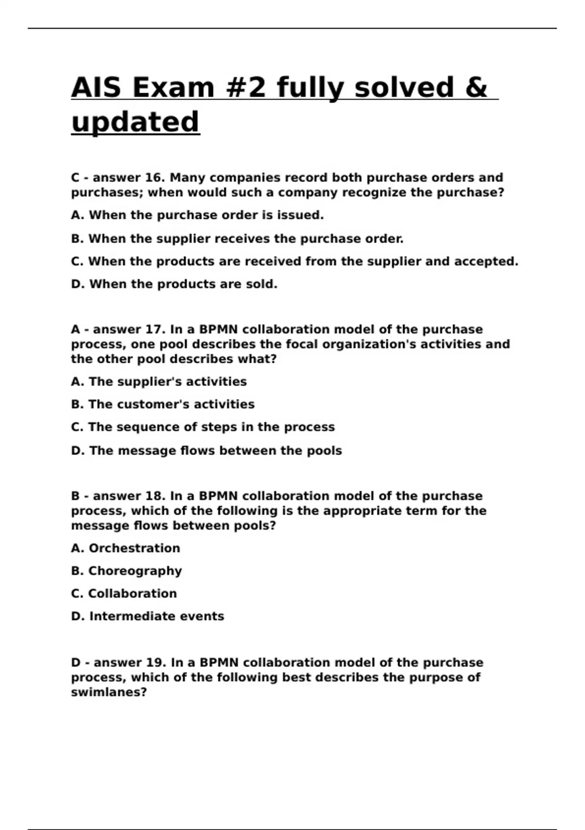 D - answer 19. In a BPMN collaboration model of the purchase