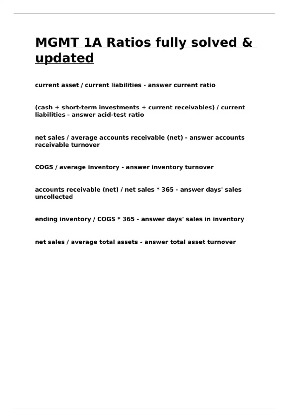 MGMT 1A Ratios fully solved & updated.