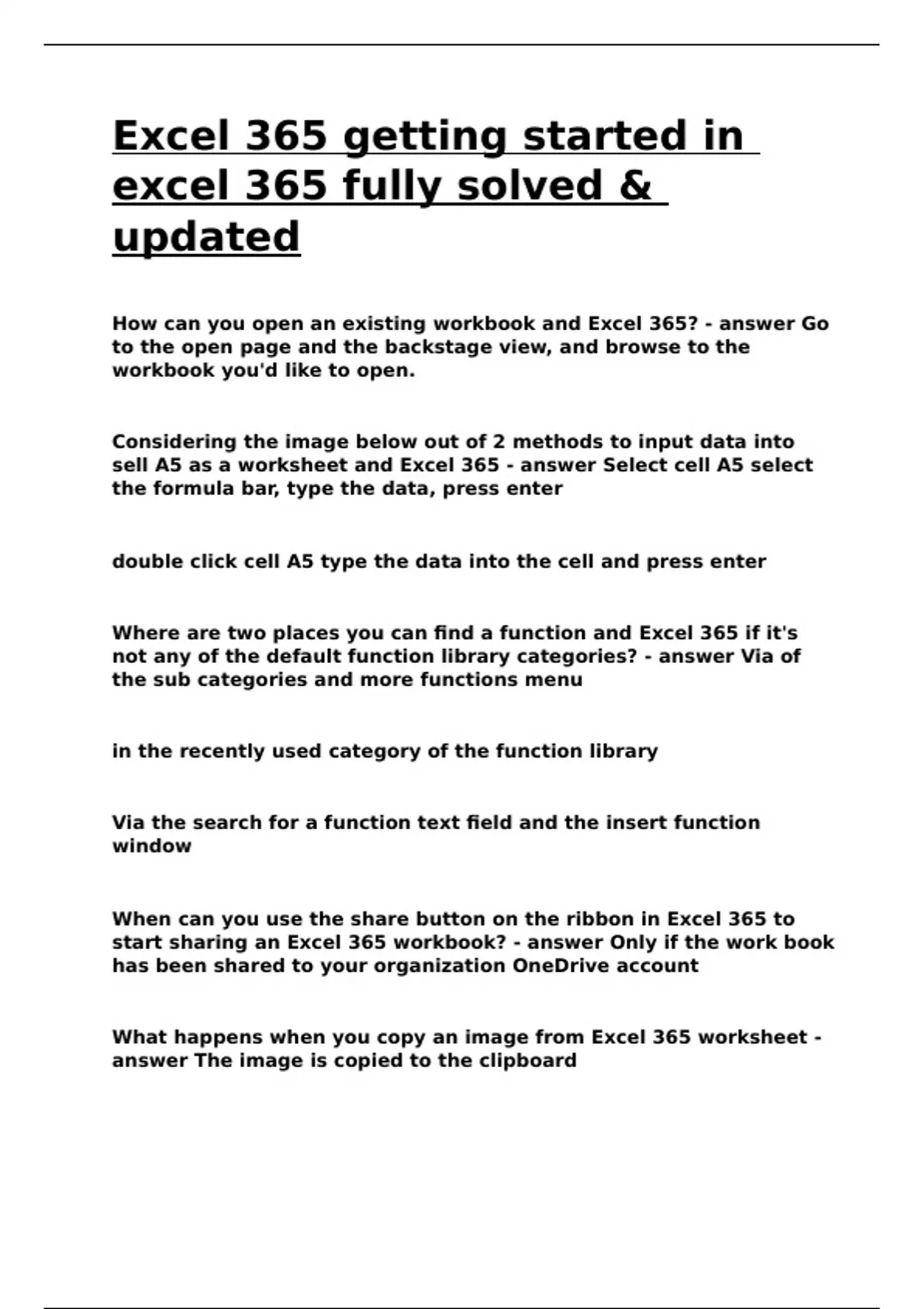 Excel 365 getting started in excel 365 fully solved & updated.