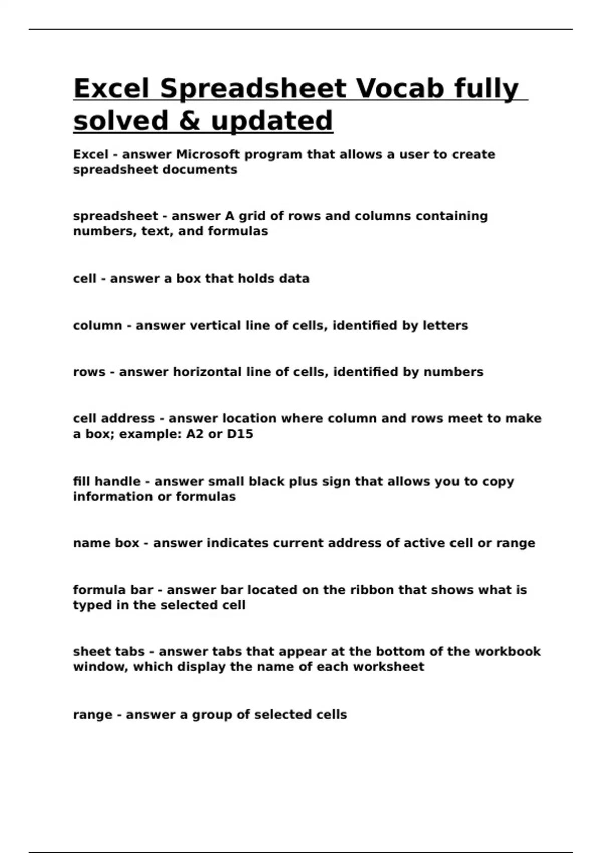 Excel Spreadsheet Vocab fully