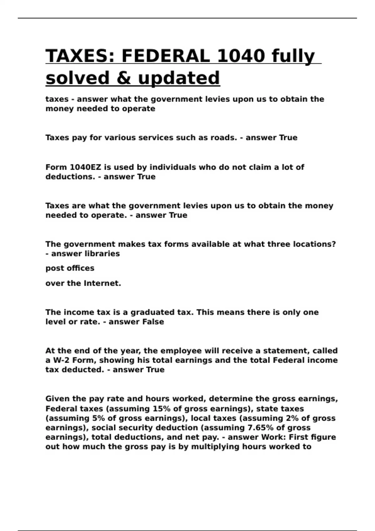 TAXES: FEDERAL 1040 fully