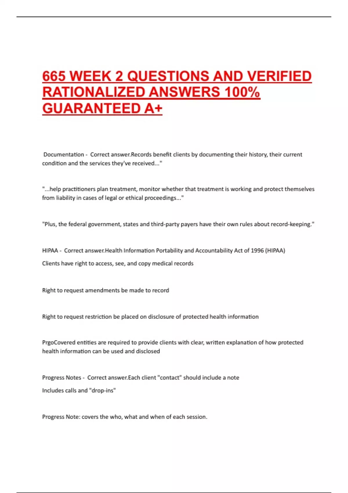 Documentation - Correct answer.Records benefit clients by documenting their history, their current