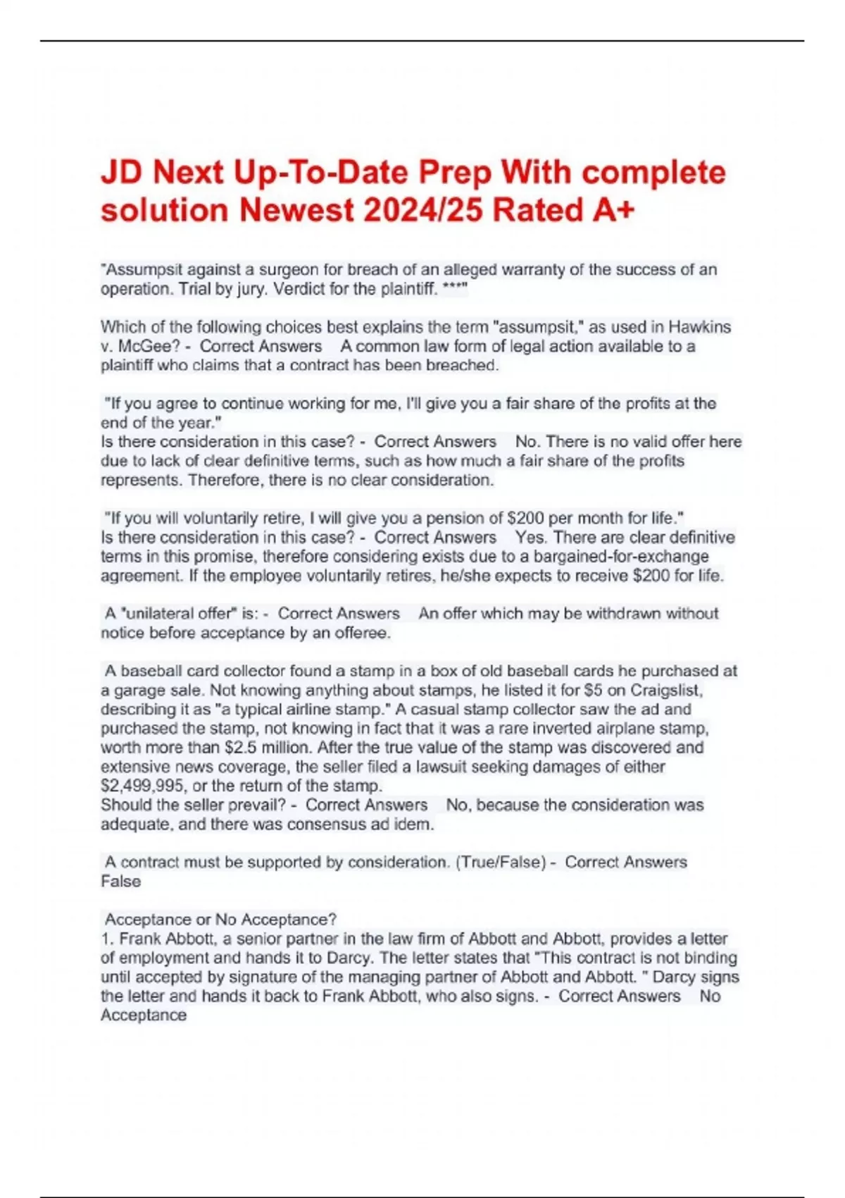 JD Next Up-To-Date Prep With complete solution Newest 2024/25 Rated A+