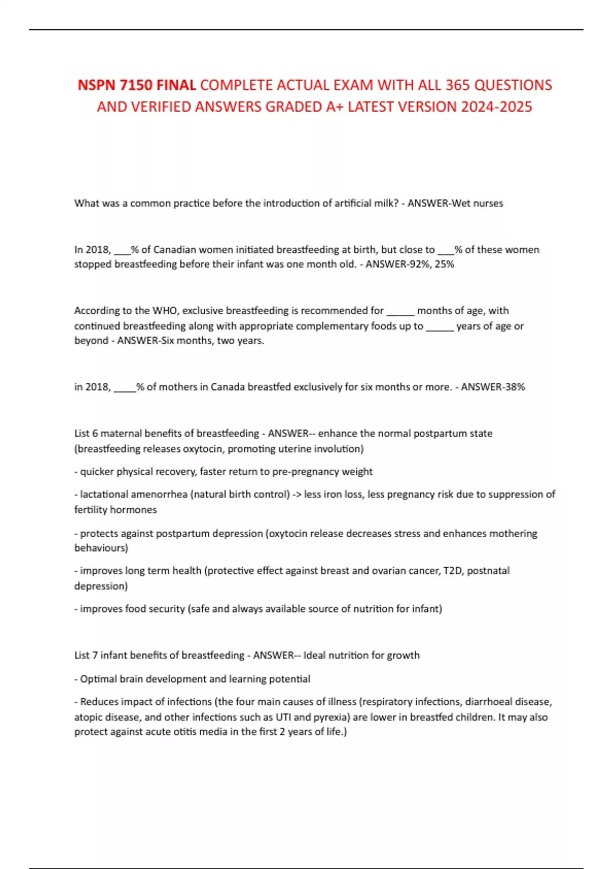 NSPN 7150 FINAL COMPLETE ACTUAL EXAM WITH ALL 365 QUESTIONS