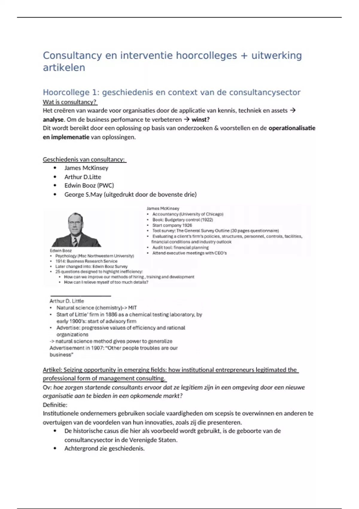 Uitwerking van alle hoorcolleges van consultancy en interventie en samengevat.