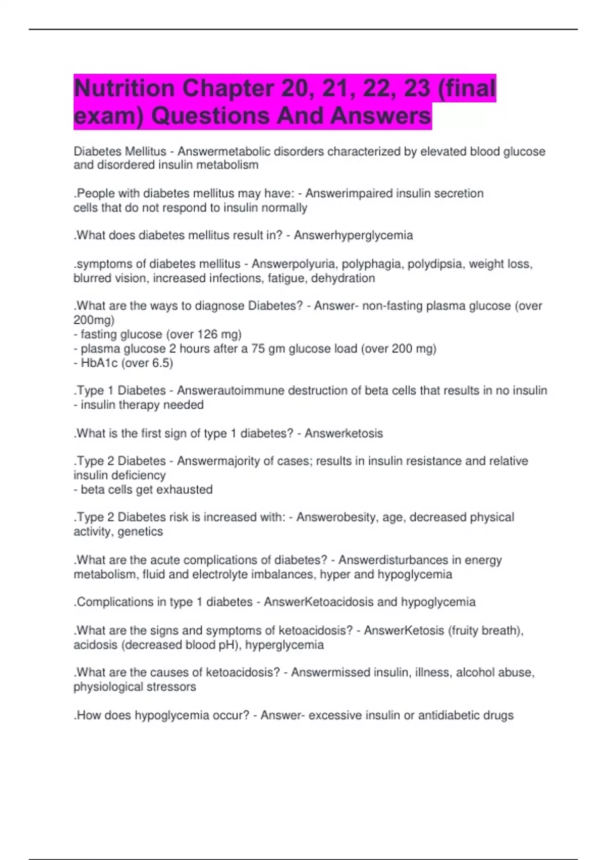 .What are the ways to diagnose Diabetes? - Answer- non-fasting plasma glucose (over