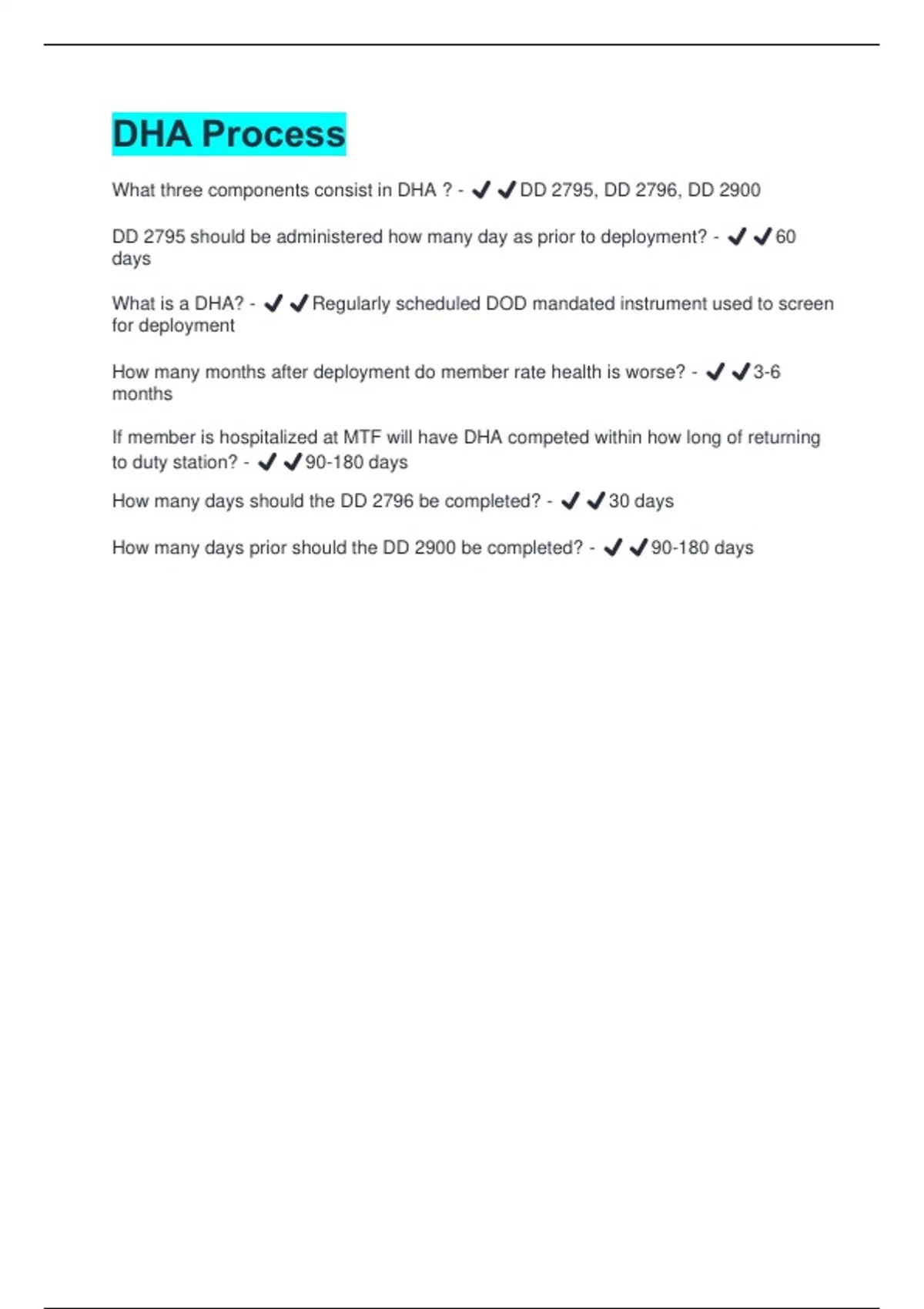What is a DHA? - ✔️✔️Regularly scheduled DOD mandated instrument used to screen