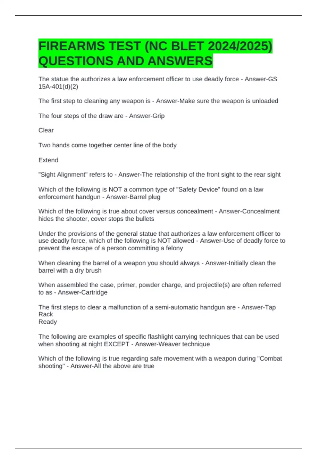 FIREARMS TEST (NC BLET 2024/2025)