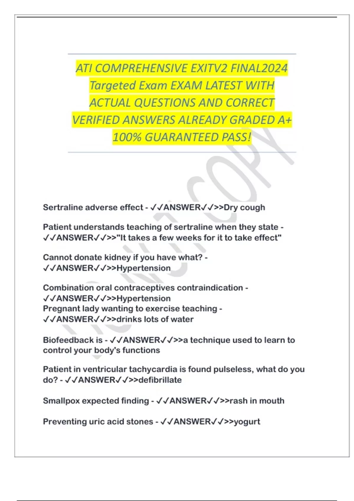 Sertraline adverse effect - ✔✔ANSWER✔✔>>Dry cough