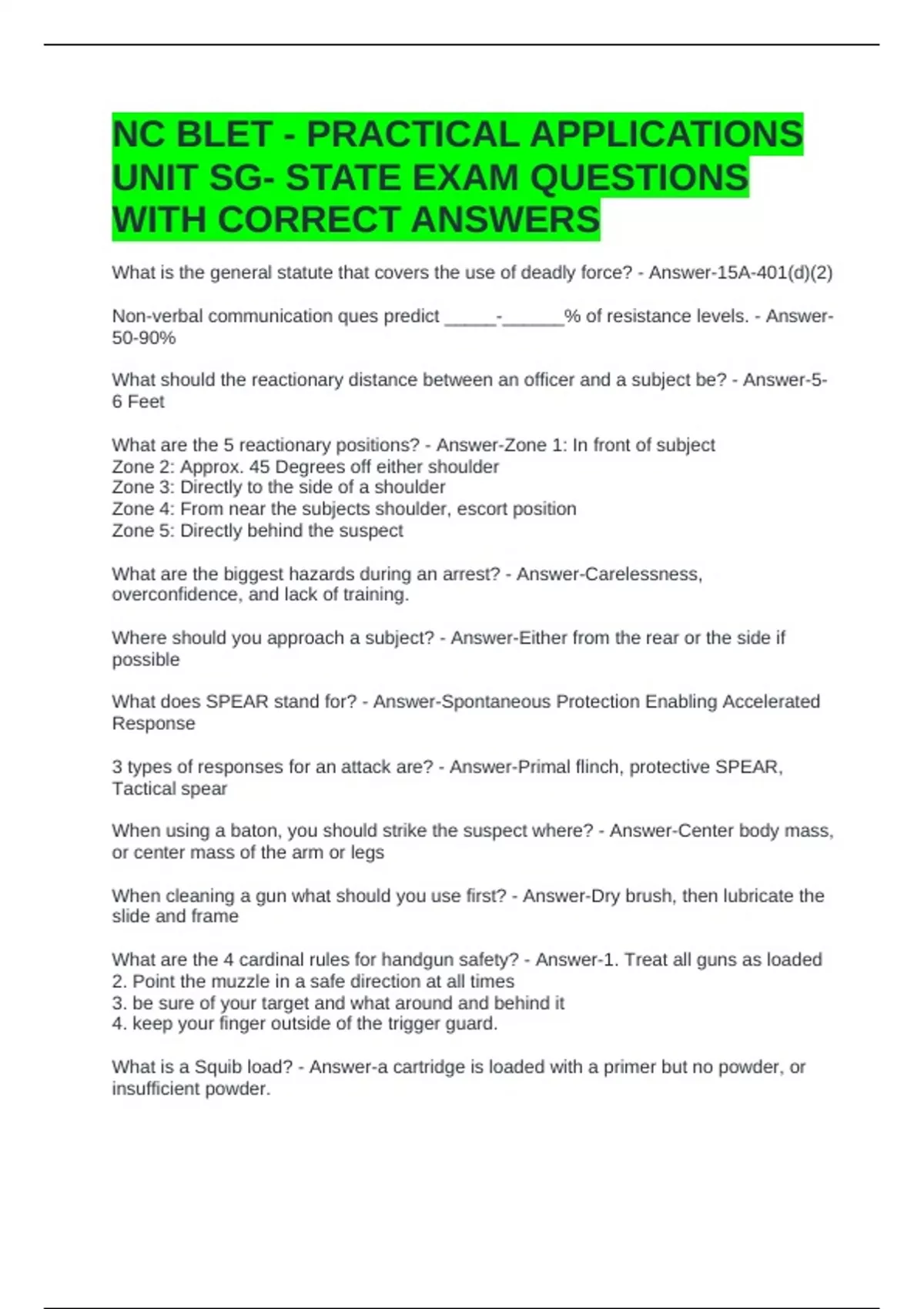 What are the 4 cardinal rules for handgun safety? - Answer-1. Treat all guns as loaded
